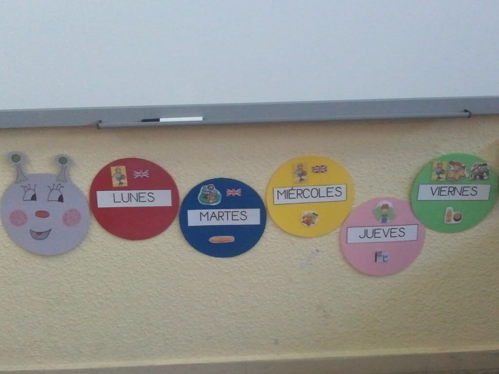El material utilizado simplemente es cartulina de colores, plastificadora, imágenes del ordenador y letreros con los días de la semana.
